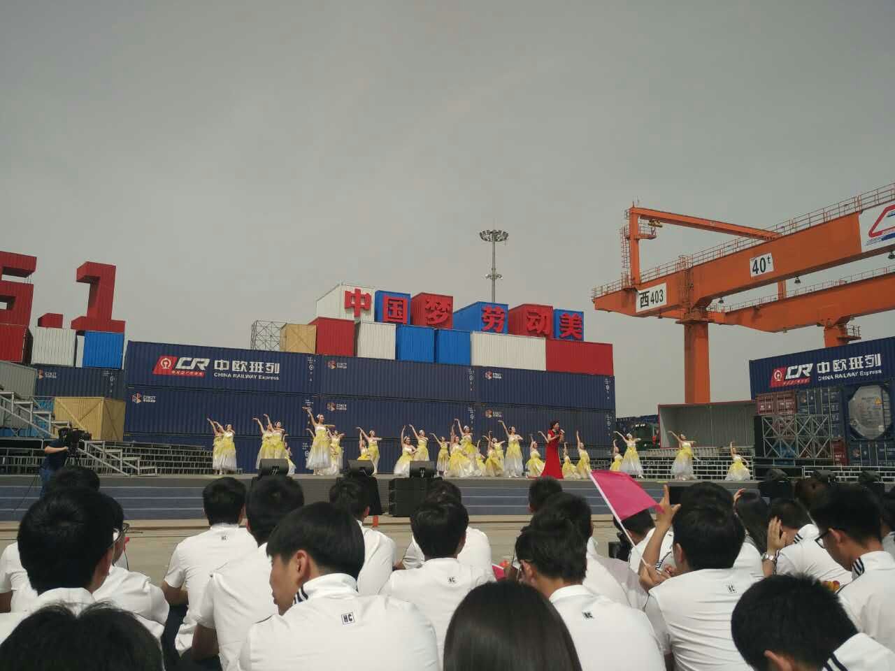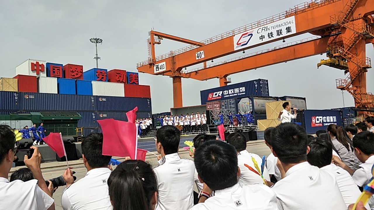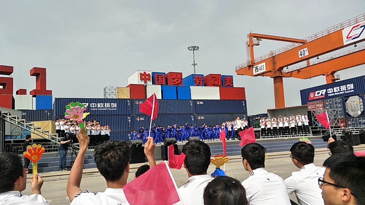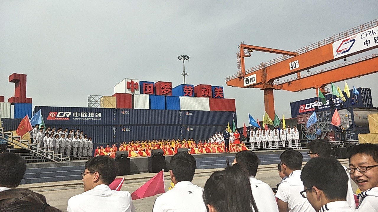 418日下午,2017年心连心“中国梦 劳动美”五一分会场在国际港务区中欧班列始发站内录制。两台气势磅礴的龙门吊车徐徐升起,央视五一国际劳动节心连心特别节目西安分会场录制正式开始。演出舞台搭建在国际港务区中欧班列始发站内,背景用集装箱搭建而成,一辆火车头当做移动平台,淋漓尽致展现了内陆港的精气神。为配合节目演出,台下西安铁路局各个机务段职工组成的各色方阵摇旗呐喊,庆祝属于劳动者自己的节日。