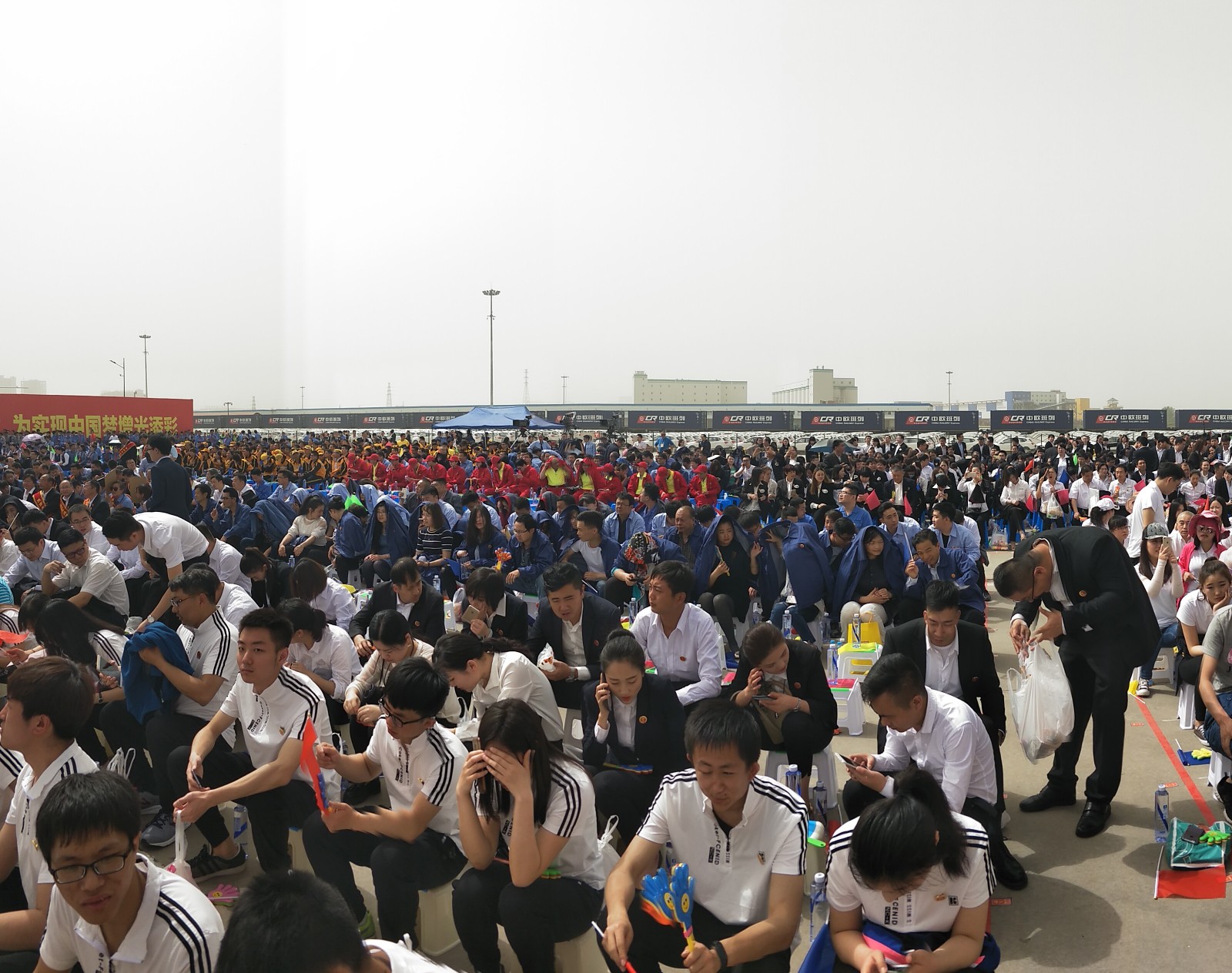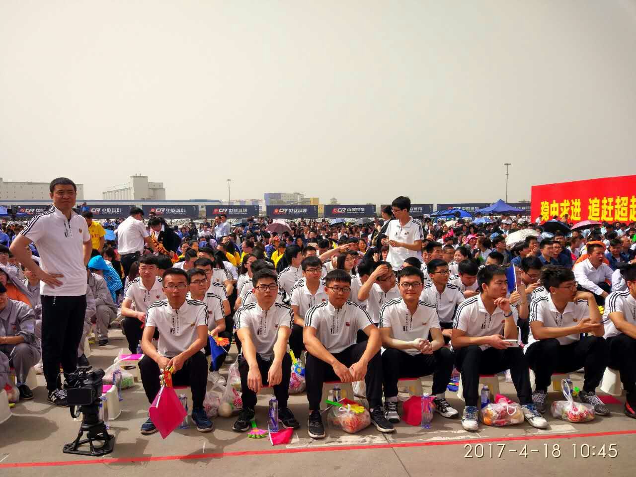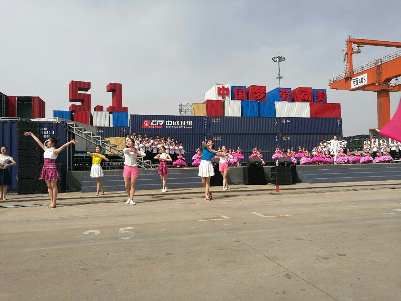 418日下午,2017年心连心“中国梦 劳动美”五一分会场在国际港务区中欧班列始发站内录制。两台气势磅礴的龙门吊车徐徐升起,央视五一国际劳动节心连心特别节目西安分会场录制正式开始。演出舞台搭建在国际港务区中欧班列始发站内,背景用集装箱搭建而成,一辆火车头当做移动平台,淋漓尽致展现了内陆港的精气神。为配合节目演出,台下西安铁路局各个机务段职工组成的各色方阵摇旗呐喊,庆祝属于劳动者自己的节日。