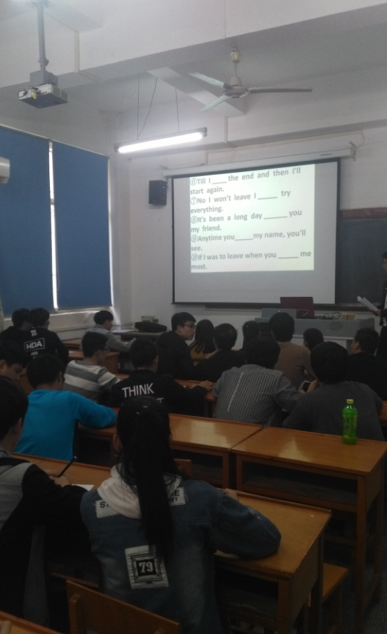 二月十二日下午,在北101、103分别开始大一,大二的比赛,比赛总共分为四个环节。第一个环节主要考察同学们的记忆力,第二环节主要是考察同学们的听力,三四环节主要是考察同学们日常的积累。在活动过程中,同学们积极参与,互相鼓励,尤其在三四环节,利用日常的积累和默契,在游戏中体会英语,感受英语。