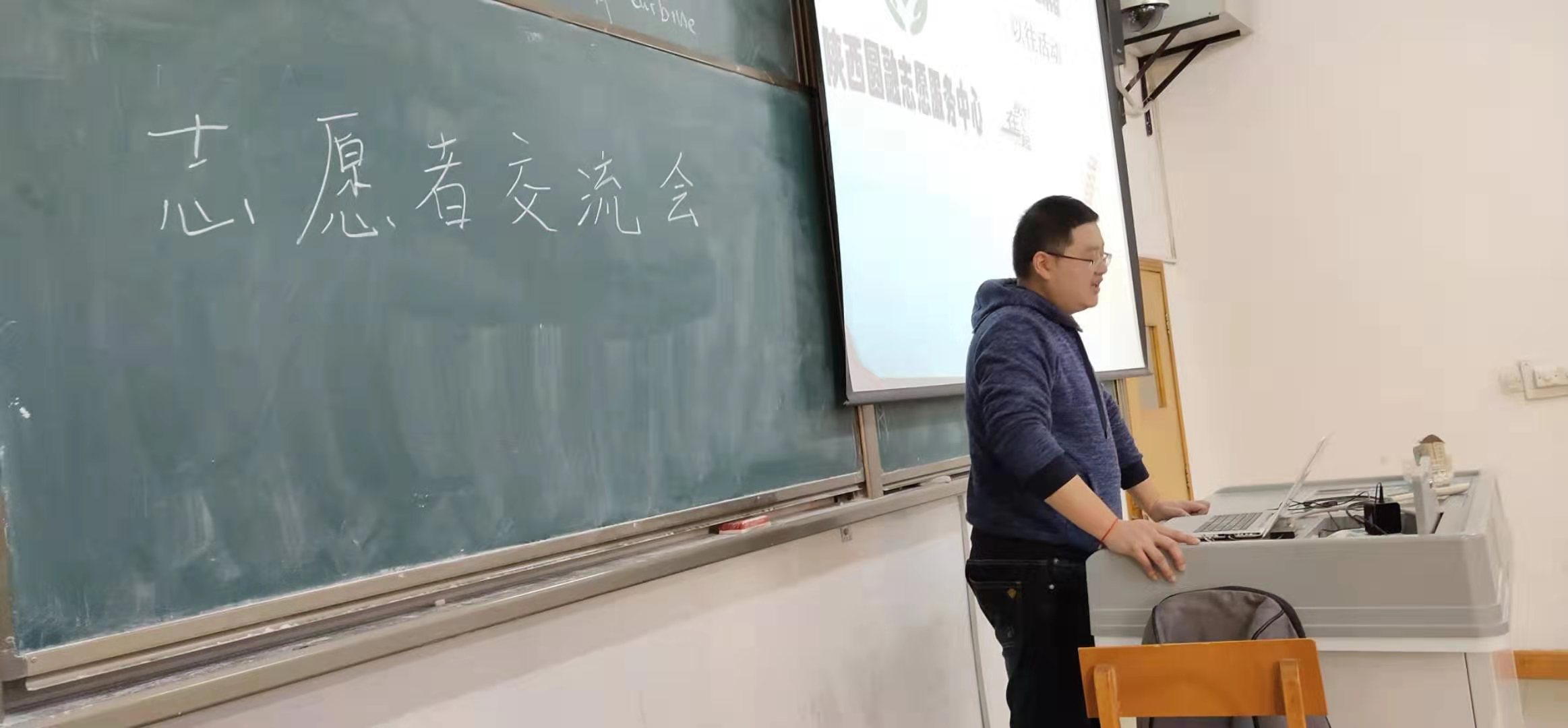 2019年11月14日中午,陕西圆融志愿服务中心在我校开展志愿服务交流工作,介绍志愿项目,与西安各高校志愿者协会联系,为他们提供培训,组织他们参加各种社会公益活动。