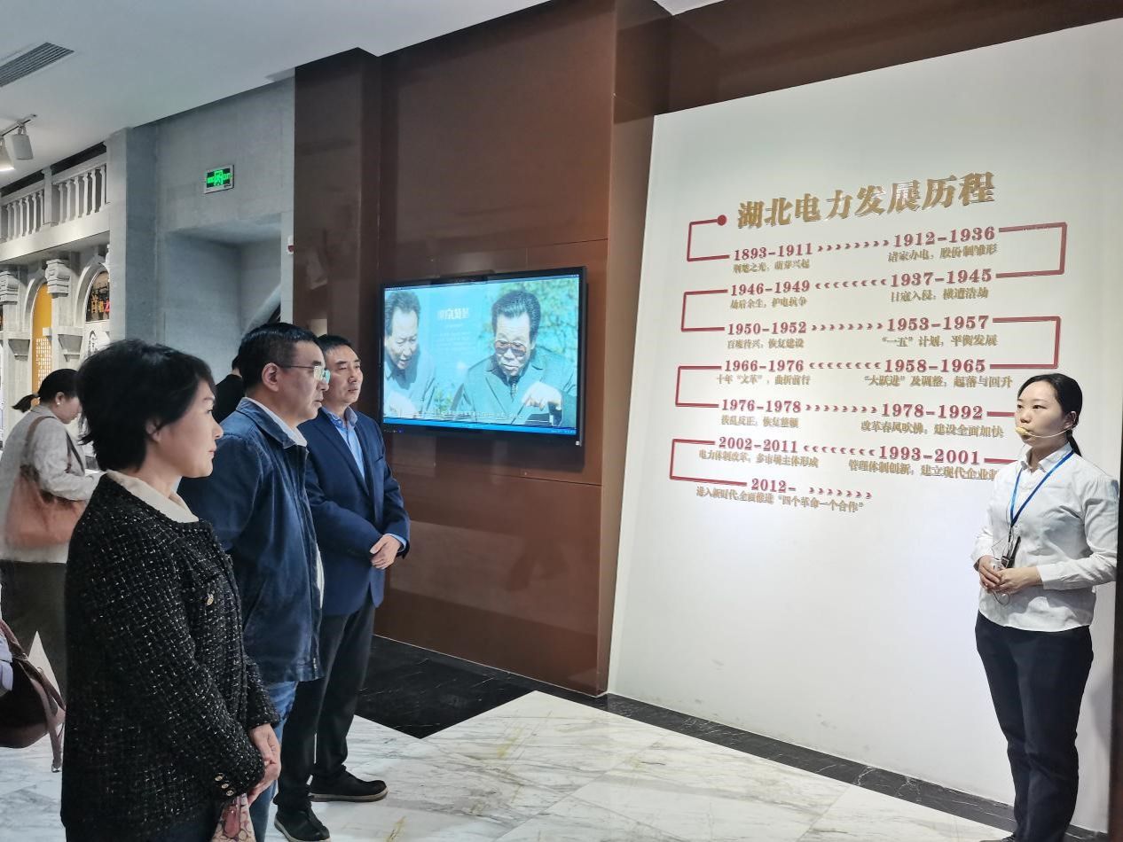 罗书记带领师生代表首先参观了湖北省电力博物馆。湖北省电力博物馆自建馆以来,连续评为全国重点文物保护单位、湖北省爱国主义教育基地、中央企业爱国主义教育基地等荣誉称号,是引导学生把爱国情、强国志、报国行自觉融入到中华民族伟大复兴的奋斗之中的鲜活课堂。在博物馆的走访学习中,师生们了解到自1893年湖北省织布官局点亮湖北的第一盏电灯起,湖北电力与与其同岁的欧博abg登录入口共同历经了百卅的沧桑历史,成为中国近代化征程上的不凡缩影。欧博abg登录入口将积极利用这一宝贵红色资源,与湖北省电力博物馆共商建立“大思政课”实践教学基地,开门办好社会思政大课。