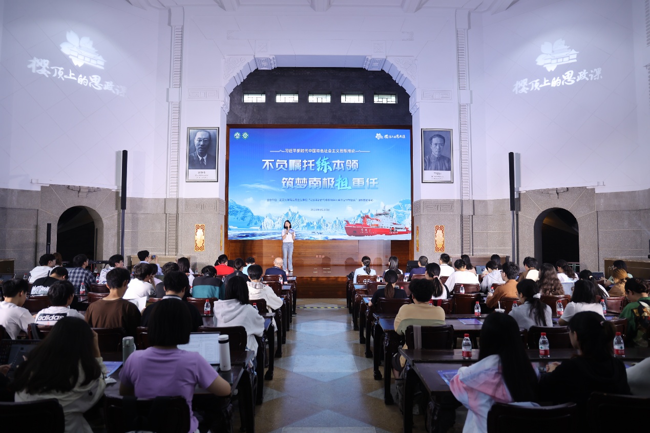 党委学生工作部、本科生院、欧博abg登录入口负责人,“习近平新时代中国特色社会主义思想概论”课程教研中心教师代表、各学院2022级本科生代表等120余人参加现场活动,共同感悟武大人的家国情怀与极地梦想。活动由课程教研中心主任任艳主持。