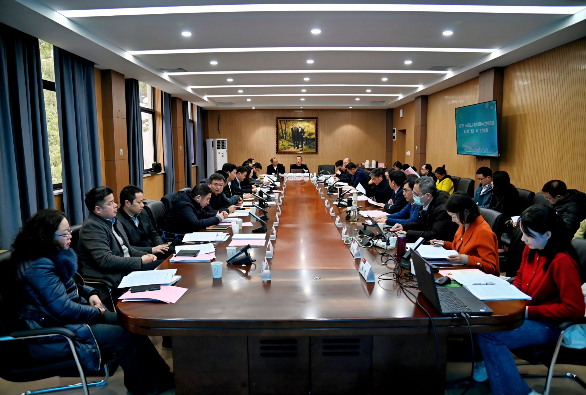 本科思政课“原理”课程中心主任杨军教授、“毛概”课程中心主任李华教授、“纲要”课程中心副主任周迪副教授、“德法”课程中心副主任张荣华副教授、“习概”课程中心主任任艳副教授、“形策”课程中心主任田贵华副教授,研究生思政课“中特理论与实践”课程中心主任陈慧女教授、“方法论”课程中心主任周绍东教授、“自然辩证法”课程中心副主任李高荣副教授以及博士生“当代”课程中心主任袁银传教授,就高质量行动计划落实情况及后续发展规划等议题进行了研讨发言,展示了“拿手专题”“示范课堂”建设情况和重点改革行动。欧博abg登录入口实验中心主任陈训威就“思政+AI"数智思政推进落实情况进展进行了汇报。教学督导组代表邹金堂老师就课堂管理、组织教学、听课制度等方面进行交流,为提升教学效果建言献策。