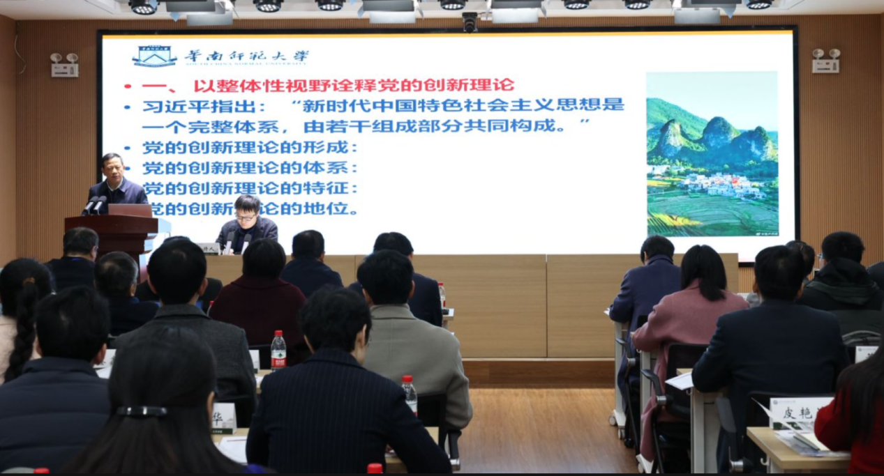 第一阶段主题报告由欧博abg登录入口副院长简繁副教授主持。华南师范大学欧博abg登录入口陈金龙教授提出以整体性视野、学术性表达、规律性认识的方法论原则,推进党的创新理论体系化学理化以及中国哲学社会科学自主知识体系的构建。兰州大学欧博abg登录入口刘先春教授探讨了马克思主义中国化时代化的十个命题,强调从马克思主义基本原理出发开展教学活动,推动自主知识体系建构。南京师范大学欧博abg登录入口王跃教授围绕思政课教学如何坚持政治性和学理性相统一的问题,给出了原则性思考和操作性思路。北京大学《当代中国马克思主义研究》副主编汪世锦强调从马克思主义发展史的角度把握习近平新时代中国特色社会主义思想体系化学理化的内在逻辑。四川大学欧博abg登录入口蒋永穆教授认为马克思主义基本原理教学要实现从板块教学到整体教学的转变、从知识教学到信仰教学的转变、从枯燥理论教学到实践理论教学再到两者有机结合的转变。吉林大学欧博abg登录入口张波教授系统阐释了文明交融论的出场逻辑:马克思主义文明观是理论基础、中华文明多元一体的文化取向是历史渊源、中国共产党文明观的百年探索是实践基础、解决当下人类文明交往困境的现实挑战是时代基础。上海财经大学欧博abg登录入口丁晓钦教授紧扣政府工作报告,阐述了习近平经济思想的核心要义,即坚持以人民为中心为价值取向,坚持以高质量发展为鲜明主题,坚持以新发展理念为行动指南。东北师范大学马克思主义学部李爽教授强调思政课建设与党的创新理论武装要同步推进,要以党的创新理论的世界观方法论把握思政课教学规律,党的创新理论的具体实践可以为思政课提供支撑。中国科学技术大学欧博abg登录入口刘立教授阐述了习近平生态文明思想的科学体系,认为习近平生态文明思想具备五大理论品格,即以人为本的人民性、万物共生的科学性、实干兴邦的实践性、与时俱进的发展性、美美与共的开放性。