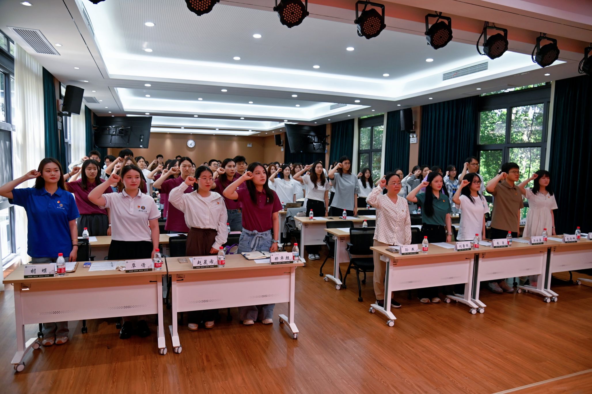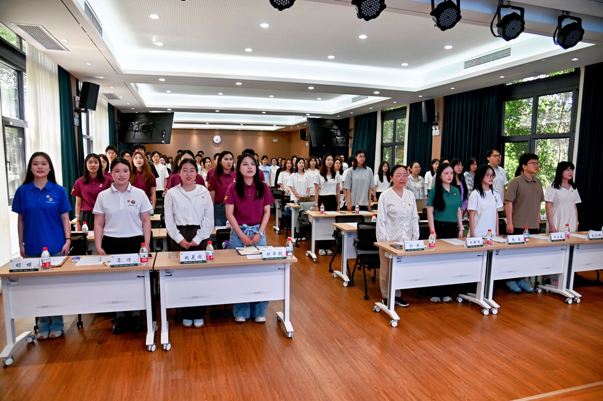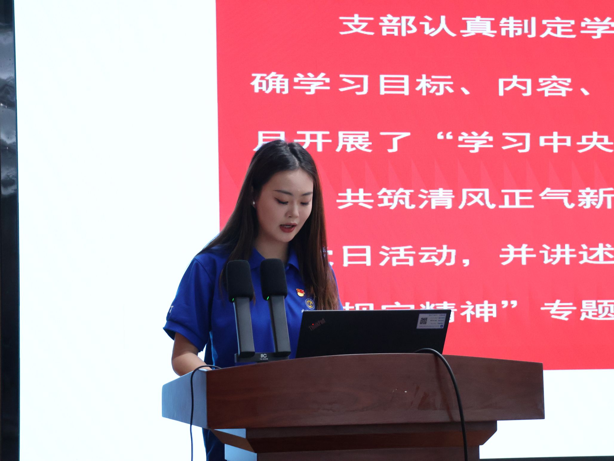 活动在庄严的国歌歌声中拉开帷幕。全体党员起立,高唱国歌。激昂的旋律回荡在报告厅内,激发着每一位党员的爱国热情。