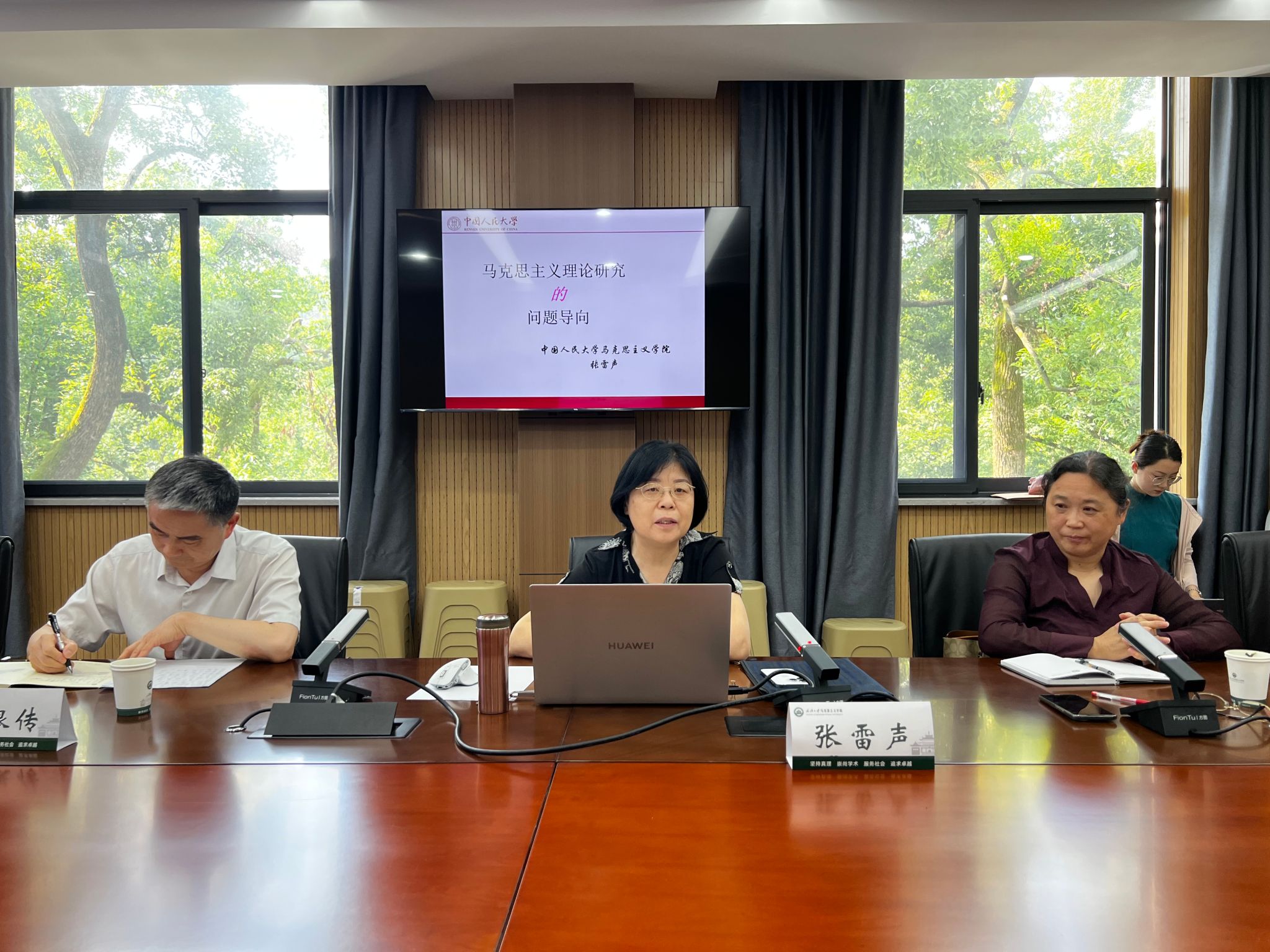 张雷声教授以“马克思主义理论研究的问题导向”为题进行了专题报告,她首先强调指出,马克思主义理论研究要从学术角度去开展,要揭示研究问题蕴涵的道理、学理、哲理,体现政治性与学理性的有机统一。张雷声教授深入分析了目前马克思主义理论研究的四种类型,即教学研究、理论研究、宣传研究和行动研究,并强调理论研究是欧博abg登录入口师生的必备能力,问题导向是理论研究的中心和品格。随后,张雷声教授高屋建瓴,从理论研究的基础、理论研究的开端、理论研究的关键、理论研究的方法四个层面,逐一展开深入解读。她指出理论研究的基础是阅读经典,做到“两个转变”:一是从图文、音像、视频等的阅读向文字交流的转变,二是从浅层阅读向深度阅读的转变。强调年轻学者要静心研读经典,边读边思,认真做好读书笔记,勤于练笔,从经典中获得养分、智慧、见识和功力,不断深化自身理论认识。理论研究的开端就是对于问题的选择,在论题选择过程中提升研究能力,确定研究方向。理论研究的关键是要有问题意识,要抓住事物的根本性质,探寻事物的发展规律。理论研究的方法就是问题求解,张教授以“马克思主义政治经济学研究主题问题研究”为例,介绍了如何运用“史论结合”的理论研究方法来研究具体问题,强调系统研究方法,强调要体现“三个逻辑相统一”,即理论逻辑、历史逻辑、实践逻辑的统一。