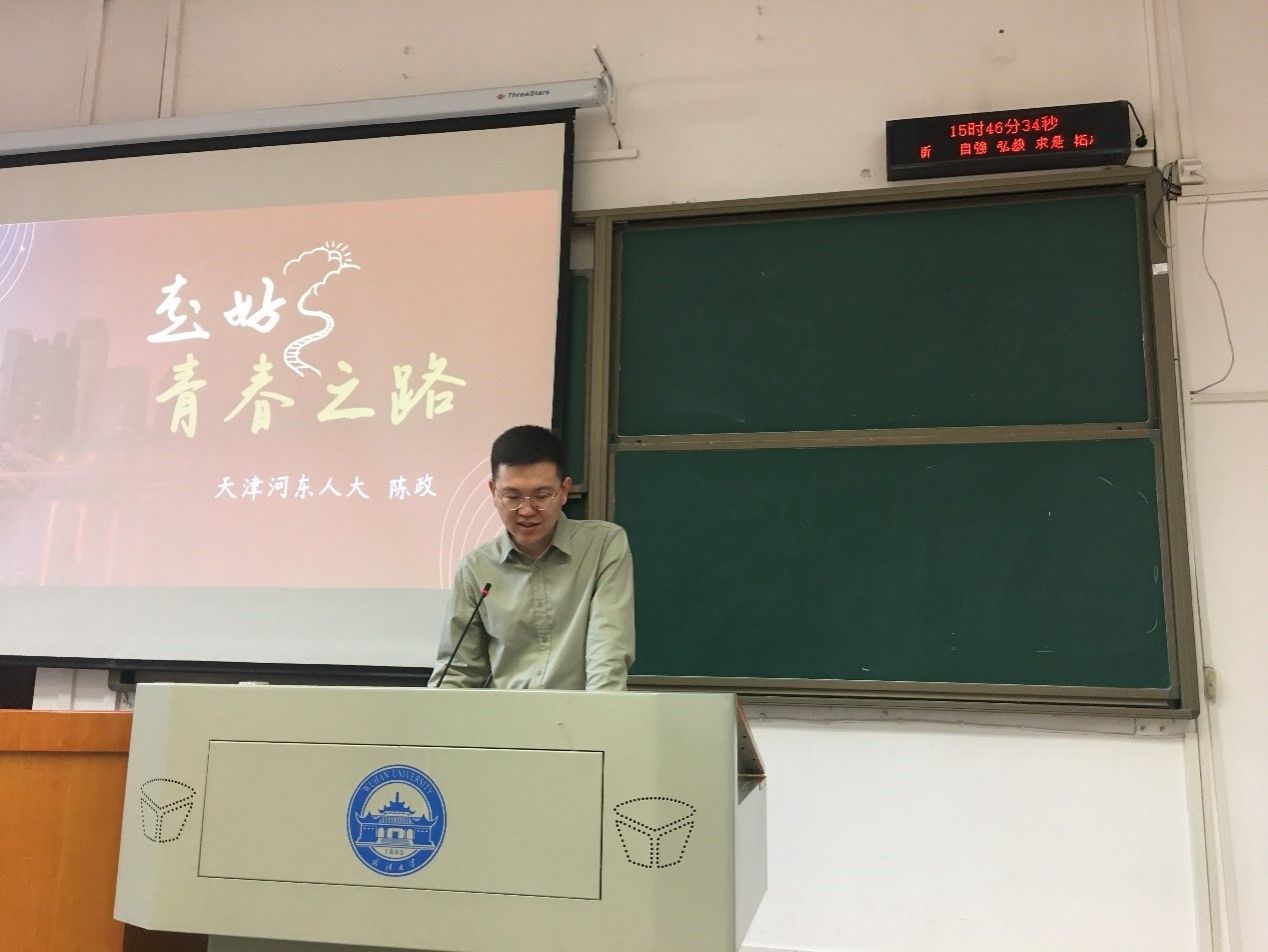 来自天津市的选调生陈政,系欧博官网2020届硕士毕业生。他首先简要介绍了天津市基本情况,进而结合自身工作经历和实际状况,详细介绍了新时代基层社区治理、基层民主政治建设、新时代中国青年的责任和担当等问题。他认为,作为选调生和青年干部,要俯下身子、融入群众,为群众办实事、解难事,在服务人民中实现理想、增强本领。